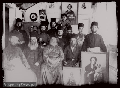 | “Ιωάσαφ μοναχός Καισαρεύς, ζωγράφος, και η εξ αυτού ονομασθείσα συνοδία των Ιωασαφαίων” (Φωτογραφία: εργαστήριο Ιωασαφαίων, αρχές 20ού αι.) |