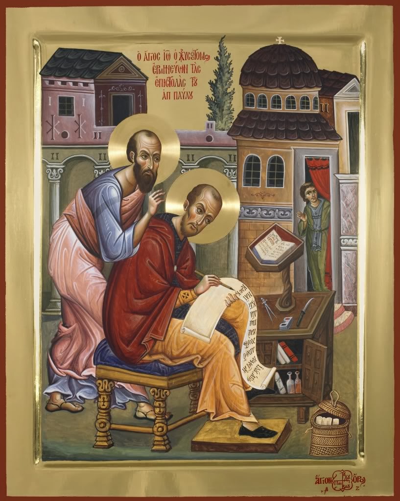 Παράλληλα, ας μην παραλείπουμε να συμμετέχουμε στο πασχάλιο δείπνο της ευχαριστιακής συνάξεως, που γίνεται τακτικά στο ναό, αλλά και σε κάθε εκκλησιαστική ακολουθία, αν είναι δυνατόν. “Μα έχω τόσες φροντίδες και ασχολίες!”, θα μου πεις. Γι’ αυτό ακριβώς έλα στο ναό, για να ελκύσεις με την εδώ παρουσία σου την εύνοια του Θεού, κι έτσι να φύγεις ασφαλισμένος• για να Τον έχεις βοηθό στις υποθέσεις σου, κι έτσι να γίνεις ακατανίκητος από τους δαίμονες και τους μοχθηρούς ανθρώπους. Γιατί, συμμετέχοντας στη θεία λειτουργία και στην κοινή λατρεία, θα ενισχυθείς από τον παντοδύναμο Θεό, θα πάρεις τα δικά Του όπλα, κι έτσι ούτε ο διάβολος ούτε οι άνθρωποι θα μπορέσουν να σε βλάψουν.Και μη μου πεις, ότι, καθώς είσαι συνέχεια απασχολημένος με τα προβλήματα της ζωής, δεν μπορείς να τρέχεις κάθε τόσο στην εκκλησία ούτε να προσεύχεσαι όλη μέρα. Στην εκκλησία, έστω, δεν μπορείς να πηγαίνεις. Όπου κι αν βρίσκεσαι, όμως, μπορείς να στήσεις το θυσιαστήριό σου. Ούτε ο τόπος ούτε η ώρα σε εμποδίζουν. Κι αν δεν γονατίσεις, κι αν δεν κλάψεις, κι αν δεν υψώσεις τα χέρια σου στον ουρανό, η προσευχή σου θα είναι τέλεια, εφόσον θα έχεις διάνοια θερμή. Εσύ που βαδίζεις στο δρόμο, εσύ που βρίσκεσαι στην αγορά, εσύ που ταξιδεύεις στη θάλασσα, εσύ που κάθεσαι στο εργαστήριό σου, εσύ που μαγειρεύεις στο σπίτι σου, εσύ που καλλιεργείς το χωράφι σου κι εσύ που σε κάποιαν άλλη εργασία καταγίνεσαι, όταν δεν μπορείτε να έρθετε στην εκκλησία, κάντε, εκεί που είστε, προσευχή εκτενή και προσεκτική. Ο Θεός δεν νοιάζεται για τον τόπο. Ζητάει μόνο θερμότητα καρδιάς και αγνότητα ψυχής. Να, και ο απόστολος Παύλος προσευχήθηκε όχι σε ναό όρθιος ή γονατιστός, αλλά μέσα σε φυλακή πεσμένος ανάσκελα, καθώς τα πόδια του ήταν σφιγμένα στην ξυλοπέδη.