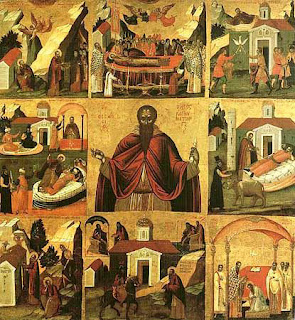 Μέσα στο πλήθος προβάλλει κι’ ένας δαιμονισμένος, που κλαίει και οδύρεται. Πλησιάζει το λείψανο του Οσίου και χτυπάει τα χέρια του απελπισμένος. Αλλοίμονο μου, λέει. Όσο ζούσες εσύ, άγιε Γέροντα, είχα ελπίδα να γίνω καλά. Όσες φορές ερχόμουνα εδώ και σ’ έβλεπα μ’ ανακούφιζε η ελπίδα. Τώρα τι να κάνω ο ταλαίπωρος. Είναι καλύτερα να ταφώ μαζί σου, άγιε, ζωντανός παρά να με βασανίζει ο τρισκατάρατος… Κι ενώ έλεγε αυτά αγγίζοντας το λείψανο του Οσίου, το κορμί του σείστηκε, έπεσε κάτω και κυλίστηκε με σπασμούς. Ο Όσιος με τη δύναμη του Θεού -και με το λείψανο του τώρα- έκανε το θαύμα του. Ύστερα από τους σπασμούς το δαιμόνιο, με τη βοήθεια του Αγίου, εγκατέλειψε τον δαιμονισμένο. Εκείνος σηκώθηκε κατόπιν υγιής και γαλήνιος κι’ ευχαρίστησε τον Όσιο δοξάζοντας τον Θεό, που δίνει τέτοια δύναμη στου αγίους Του… Έπειτα έγινε η ταφή του Αγίου. Ήτανε τότε 105 ετών.
