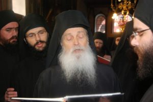 …….Αφετέρου, ότι κυριολεκτικά “έπεσε μαχόμενος”: συμμετέχοντας στην ι. αγρυπνία επί τη μνήμη του αγ. Γεωργίου του εξ Ιωαννίνων στο πλησίον Ι. Κελλίον των Γερασιμαίων, ένιωσε αδιαθεσία κατά τη διάρκεια της Λιτής. Μετεφέρθη σύντομα στο Κελλί του, αλλά σύντομα παρέδωσε το πνεύμα του, “εις Ον ηγάπησεν”. Το σεπτό του σκήνωμα ακολούθως μετεφέρθη στην εγγύτερα ευρισκόμενη Ι. Μονή Αγ. Παύλου, καθώς αύριο το πρωί θα ψαλεί η εξόδιος ακολουθία κατά το αγιορείτικο τυπικό. Εν συνεχεία θα επανέλθει στο κοιμητήριο της μετανοίας του (με μουλάρια, λόγω της κακοκαιρίας), για τον ενταφιασμό του.