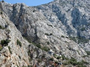Και ήδη εις την ερημικήν ταύτην περιοχήν, της κατά Θεόν πτωχείας και ακτημοσύνης, ανεφάνησαν τα πρώτα συμπτώματα κοσμοπολιτισμού και μεταξύ των ταπεινών ισογείων οικίσκων και σπηλαίων εγείρεται οίκημα με συγχρονισμένον ρυθμόν, πολλά και ευπρεπή δωμάτια και συνοδείαν κελλίου μάλλον ή ερημητηρίου. Το αληθές είναι ότι χρησιμεύει τούτο ως καταφύγιον των διερχομένων και αληθής όασις δια της παρεχομένης εν αυτώ φιλοξενίας, αλλ΄ όπως και αν έχει, αποτελεί παραφωνίαν προς τε το περιβάλλον, τον προορισμόν και την αυστηράν παράδοσιν. Είναι ούτος ο οίκος των Δανιηλαίων, αγιογραφικός, και με αβραμιαίας περί την φιλοξενίαν παραδόσεις. Συνεστήθη υπό του λογιωτάτου και εις άκρον αρετής εληλακότος Γέροντος Δανιήλ του Σμυρναίου.