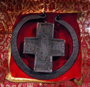 Τον βαρύ επιστήθιο Σταυρό του Αγίου Αθανασίου, που αντί για αλυσίδα έχει μια κυκλοτερή λάμα σιδήρου, φορά ο Χρυσόστομος Λαυριώτης, σήμερα Επίσκοπος Ροδοστόλου