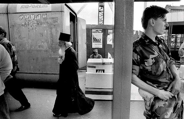 Τότε σηκώθηκε και έφερε μερικές σέρβικες εφημερίδες οι οποίες μέσω φωτομοντάζ τον παρουσίαζαν ως σούπερμαν με βόμβες και πυρομαχικά στη μέση.