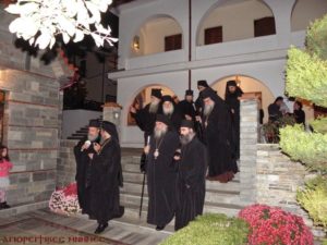 Χοροστατεί ο Ηγούμενος της Ιεράς Μονής Βατοπαιδίου Αρχιμ. Εφραίμ, ενώ συμπροσεύχονται ο Μητροπολίτης Λεμεσού κ. Αθανάσιος, ο Μητροπολίτης Φιλαδελφείας κ. Βενέδικτος και ο Μητροπολίτης Δράμας κ. Παύλος.