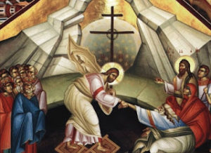 Δ. Τι συνέβη λοιπόν; Κατεβαίνοντας ο Θεός στον Άδη σώζει όλους χωρίς εξαίρεση; Όχι βέβαια, αλλά κι’ εκεί σώζει όσους πίστεψαν. Χθες είδαμε το έργο της σωτηρίας, σήμερα την εκδήλωση της εξουσίας. Χθες είδαμε την αδυναμία, σήμερα την κυριαρχία Του. Χθες φάνηκαν τα σημάδια της ανθρώπινης φύσης Του, σήμερα της θεϊκής φύσης. Χθες Τον ράπιζαν, σήμερα ραπίζει με την αστραπή της θεότητος τον χώρο του Άδη. Χθες Του έβαζαν δεσμά, σήμερα Αυτός δένει τον τύραννο – διάβολο με άλυτα δεσμά. Χθες καταδικαζόταν, σήμερα χαρίζει ελευθερία στους κατάδικους. Χθες Τον περιγελούσαν οι υπηρέτες του Πιλάτου, σήμερα οι θυρωροί του Άδη όταν Τον είδαν γέμισαν φρίκη.