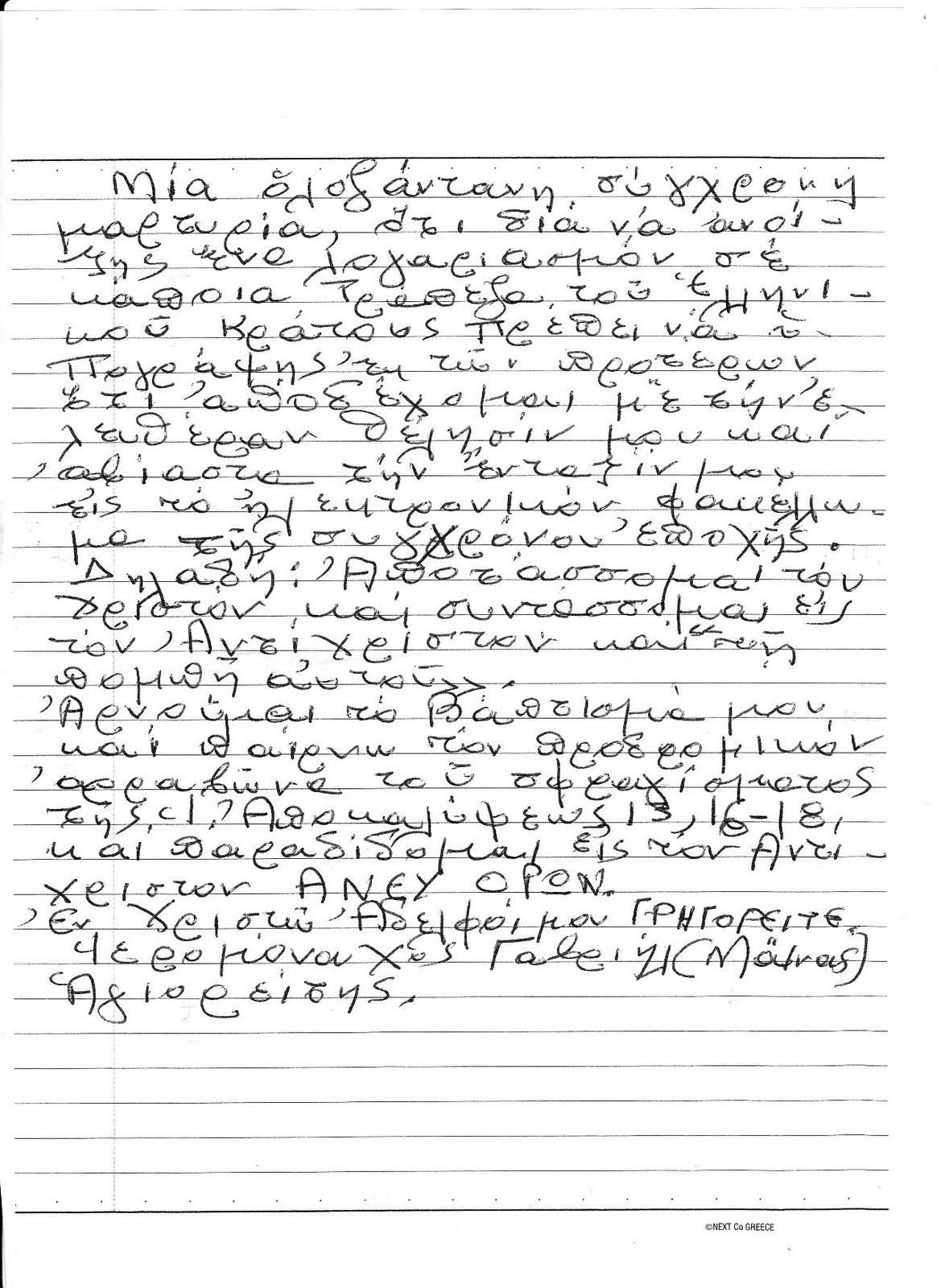 Post navigation ← Previous Next → Γέροντας Γαβριήλ Μάινας από την Καψάλα του Αγίου Όρους: Για την ηλεκτρονική διακυβέρνηση. Posted on 24 Δεκεμβρίου, 2013 by Areti Maurogianni Τα παρακάτω μας έστειλε ο Γέροντας Γραβιήλ Μάινας από την Καψάλα του Αγίου Όρους. Κάντε κλικ στις εικόνες για μεγένθυση.