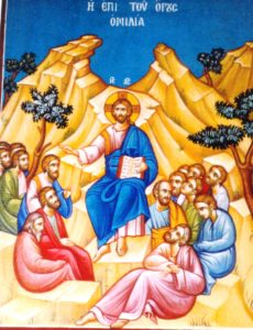 1 Ἰδὼν δὲ τοὺς ὄχλους ἀνέβη εἰς τὸ ὄρος, καὶ καθίσαντος αὐτοῦ προσῆλθον αὐτῷ οἱ μαθηταὶ αὐτοῦ, 2 καὶ ἀνοίξας τὸ στόμα αὐτοῦ ἐδίδασκεν αὐτοὺς λέγων·