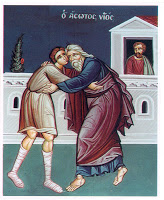 Ὅταν ὁ ἄσωτος υἱός «ἦλθεν εἰς ἑαυτόν» –ἀφοῦ ἦταν ἐκτός ἐαυτοῦ, στήν τρέλλα, στίς ἡδονές καί στά πάθη αὐτοῦ τοῦ κόσμου– διά τῆς μετανοίας ἔτρεξε πρός τόν πατέρα. Καί ὁ πατέρας τόν ἀγκαλιάζει καί τόν φιλεῖ. Δέν εἶχε τελειώσει ἀκόμη ὁ υἱός τήν ἐξομολόγησί του, δέν εἶχε ἐκφράσει ἀκόμη τήν ἐπιθυμία του νά τόν δεχθῇ ὁ πατέρας του σάν δοῦλο, καί ὁ πατέρας λέγει στούς ὑπηρέτες του: «Φέρετε τήν στολή τήν πρώτη καί ἐνδύσατέ τον καί δῶστε δακτυλίδι στό χέρι του καί ὑποδήματα στά πόδια του καί ἀφοῦ φέρετε τόν μόσχο τόν σιτευτό, σφάξτε τον γιά νά φάγωμεν καί εὐφρανθῶμεν».