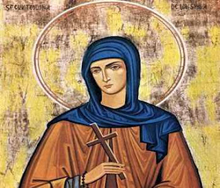 Εἶναι ἡ ὁσία Θεοδώρα τῆς Σύχλας τῆς ὁποίας τά ἱερά Λείψανα σήμερα εὑρίσκονται στίς κατακόμβες τοῦ μοναστηριοῦ Πετσέρσκα τοῦ Κιέβου. Δεξιά μας λοιπόν στό δασῶδες μονοπάτι βλέπουμε δίπλα, ἐπάνω σ᾿ ἕνα βράχο, τό λεγόμενο «Φρέαρ τῆς ὁσίας Θεοδώρας». Εἶναι ἕνα κοίλωμα ἐπάνω στόν βράχο, ὅπου συγκεντρωνόταν τό βρόχινο νερό, ἀπό τό ὁποῖο ἔπινε ἡ Ὁσία. Τό παράδοξο εἶναι ὅτι καί τό καλοκαίρι, ὅσο μεγάλη καί νά εἶναι ἡ ἀνομβρία, διατηρεῖται μικρή ποσότης νεροῦ. Πιό πάνω στά 20 μέτρα, ἀριστερά τοῦ μονοπατιοῦ, ὑπάρχει ἡ σπηλιά τῆς ὁσίας Θεοδώρας. Μία κάθετος σχισμή μέ πέτρινες πλευρές ἀποτελεῖ τήν εἴσοδο τῆς σπηλιᾶς. Στό ἐσωτερικό της ὑπάρχει ὑγρασία καί ὀλίγο φῶς. Εἶναι σχεδόν κυκλοτερής μ᾿ ἕνα μεγάλο βράχο στό κέντρο, ὁ ὁποῖος ἐχρησίμευε ὡς κάθισμα καί κρεββάτι γιά τήν Ὁσία. Ὅταν ἐμπήκαμε μέσα, μερικές εὐλαβεῖς γυναῖκες εἶχαν ἀνάψει 5-6 κεριά καί ἄλλα τόσα καντήλια. Δεξιά καί ἐντός τῆς σπηλιᾶς φαίνεται τό ἄνοιγμα, πού σχηματίσθηκε θαυματουργικῶς, κατόπιν προσευχῆς τῆς Ὁσίας, προκειμένου νά γλυτώση ἀπό τήν ξαφνική ἐπίθεσι δύο ληστῶν. Ἔξω ἀπό τήν σπηλιά εὑρίσκεται ἐντοιχισμένη ἡ ἀσκητική μορφή τῆς Ἁγίας, τῆς ὁποίας τά ἀγωνίσματα ὁμοιάζουν ὑπερβολικά μέ ἐκεῖνα τῆς ὁσίας Μαρίας τῆς Αἰγυπτίας. Ἐψάλαμε ἐκεῖ τό τροπάριο της: «Ἐν σοί Μῆτερ ἀκριβῶς…» καί ἀνηφορίσαμε.Ἐδῶ εἶναι τό βασίλειο τής ἡσυχίας καί τῶν αἰωνοβίων δασῶν, μοῦ ἔλεγε ὁ πατήρ Ἰωαννίκιος. Ἄλλοι ὀνομαστοί ἡσυχασταί πού ἀγωνίσθηκαν ἐδῶ ἦταν ὁ ὅσιος μεγαλόσχημος ἱερομόναχος Παῦλος, Πνευματικός τῆς ὁσίας Θεοδώρας, ὁ ὅσιος Χριστόφορος, ὁ ὅσιος Ἰωσήφ ὁ Ἐρημίτης, ὁ ὅσιος Ἐλευθέριος καί μέχρι τῶν ἡμερῶν μας συνεχίζουν τήν ἡσυχαστική παράδοσι ρουμᾶνοι μοναχοί, ὅπως ὁ π. Σωφρόνιος, ὁ π. Ἀνατόλιος, ὁ ἱερομ. Κασσιανός, ὁ π. Γερβάσιος καί ἄλλοι.