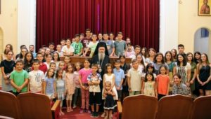 Στήν συνέχεια ἡ χορωδία ἔψαλε κατάλληλους ὕμνους καί οἱ μαθητές Σπύρος Ἀσημακόπουλος καί Χάϊδω Κουρμούση ἀνέγνωσαν κείμενα γιά τήν κατήχηση καί τήν ἀγάπη τῆς Ἐκκλησίας γιά τά παιδιά ἀπό τόν ἅγιο Πορφύριο καί ἀπό τά βιβλία τοῦ Σεβασμιωτάτου.