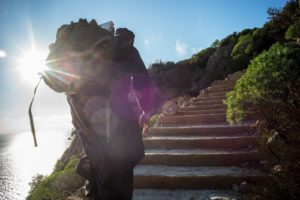 Ένας απόκρημνος ορεινός όγκος τα Καρούλια και εκεί, μια χούφτα μοναχών έχουν χτίσει μικρά σπιτάκια που κρέμονται επισφαλώς στην άκρη του βράχου με τα κύματα να γλύφουν τα βράχια μερικά μέτρα πιο κάτω.