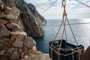 Στα Καρούλια οι ασκητές ζουν σαν τα πουλιά. Μένουν σε αυτοσχέδια σπίτια στην άκρη των γκρεμών, δεν καλλιεργούν και δεν αποθηκεύουν τίποτα, και τρέφονται με ό,τι βρουν – ό,τι τους στείλει ο Θεός.